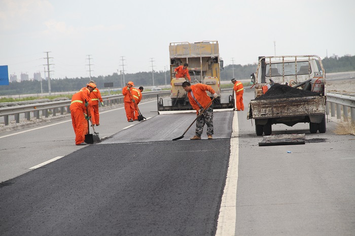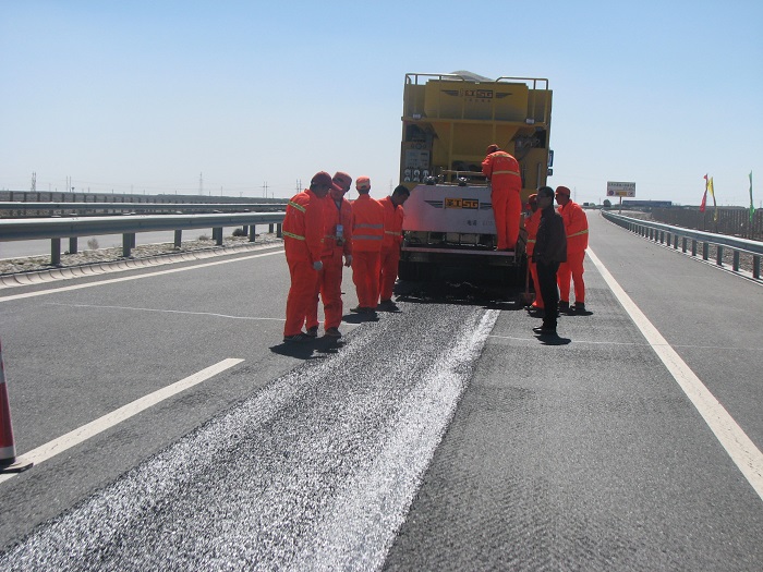 G30线 车辙处治现场(微表处填充车辙)