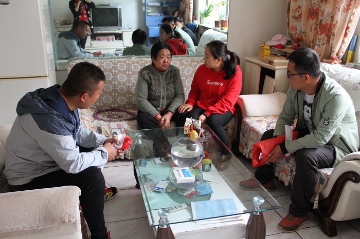 在永乐街区11号楼李大祥的家里,团员青年看望慰问了他的遗属。他的爱人看到我们来看望她时,泪水夺眶而出,慰问人员一边宽慰她要坚强地面对生活,缓解她的情绪,一边嘱咐她要好好地照顾自己,安享晚年生活。