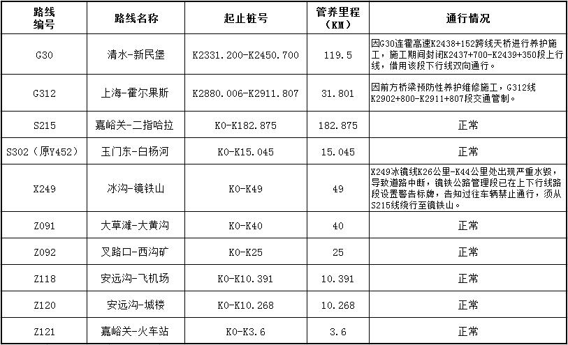 嘉峪关公路管理局管养公路路况信息(2018年5月21日)