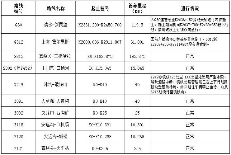 嘉峪关公路管理局管养公路路况信息(2018年5月26日)