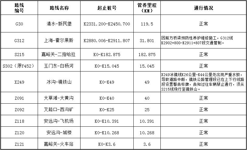 嘉峪关公路管理局管养公路路况信息(2018年5月28日)