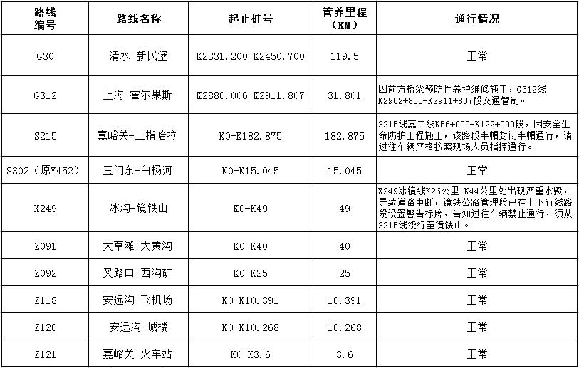 嘉峪关公路管理局管养公路路况信息(2018年6月3日)