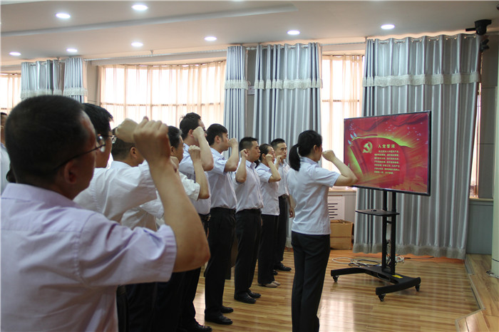 开展入党宣誓强信念。组织5名新接收的预备党员进行了庄严的入党宣誓,80余名老党员重温了入党誓词,再一次唤醒了全体党员“不忘初心,牢记使命”意识。